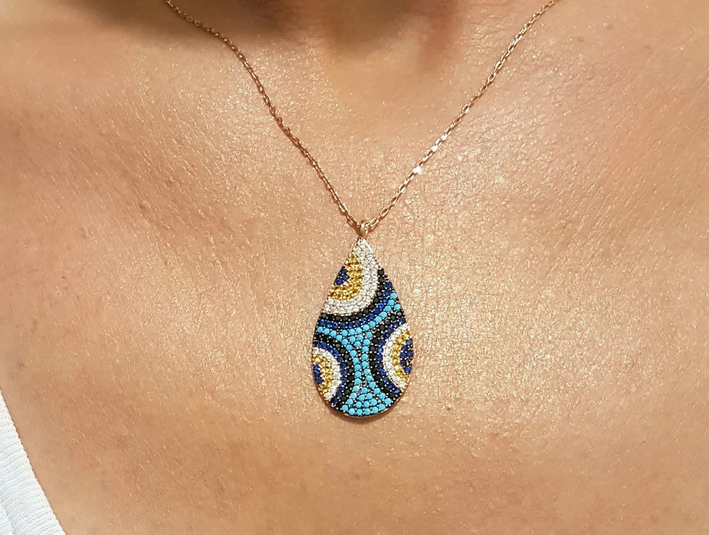 Stay protected and stylish with our 925 Sterling Silver Evil Eye Necklace. Encrusted with blue, yellow, and crystal stones, this necklace features multiple protective eyes. Made of high-quality silver, it not only adds a unique touch to your outfit, but also offers a sense of security.