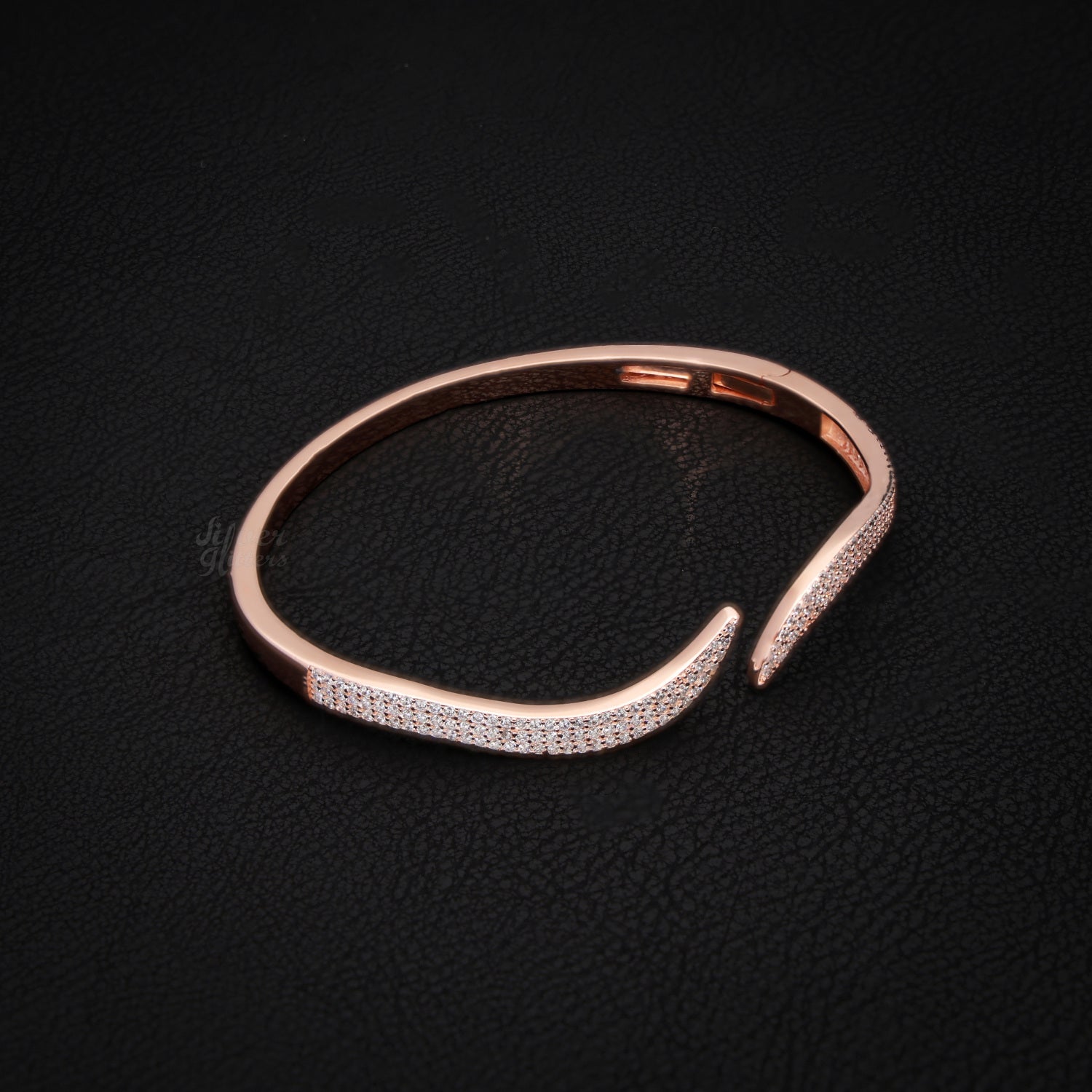 Crafted with the finest sterling silver and accented with a touch of rose gold, this Kada is a stunning addition to any woman's jewelry collection. Its elegant design and premium materials offer both style and quality. Elevate your look with this luxurious and timeless piece.