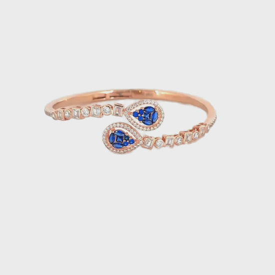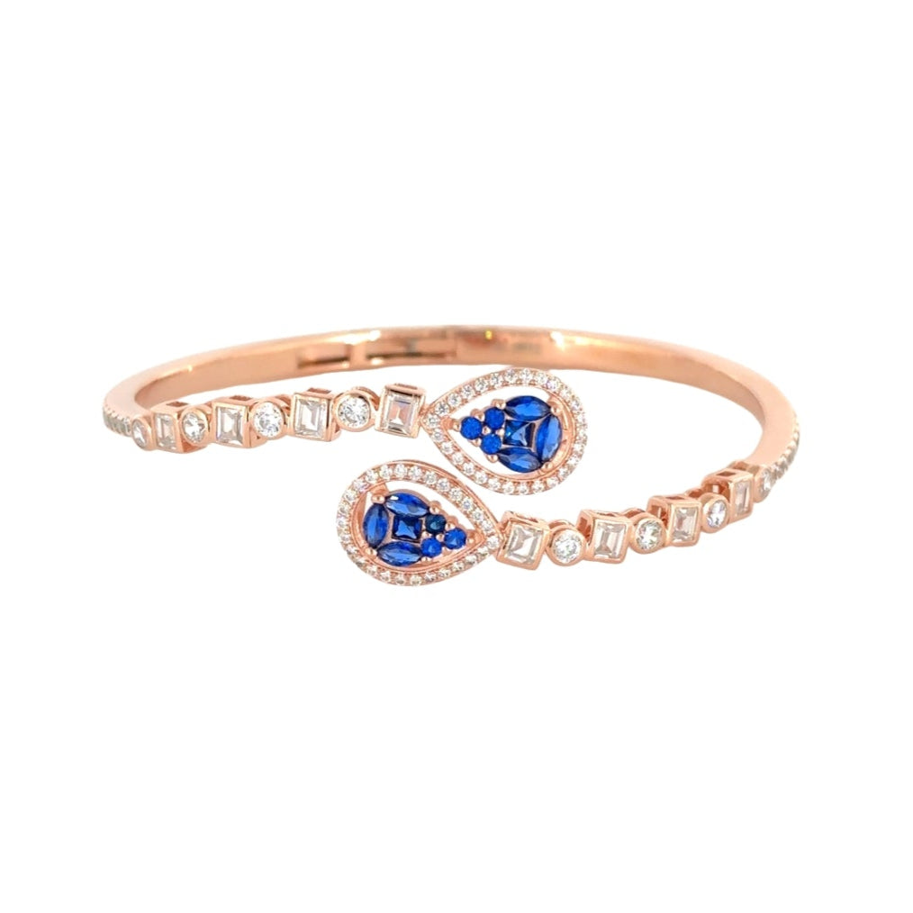 Expertly crafted with 925 sterling silver, this Sapphire Rose Gold Women's Kada exudes luxury and elegance. The delicate rose gold finish adds a touch of femininity, while the sapphire stones add a subtle pop of color. Elevate any outfit with this timeless piece.