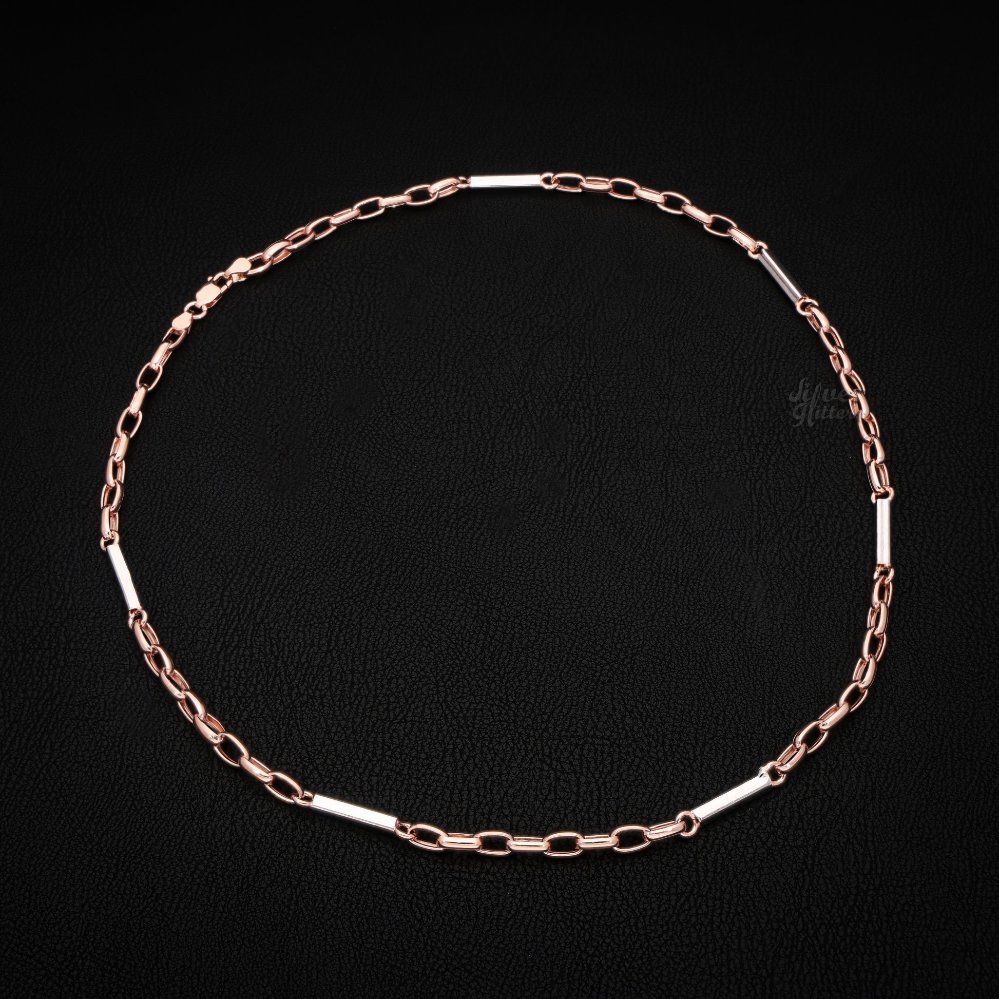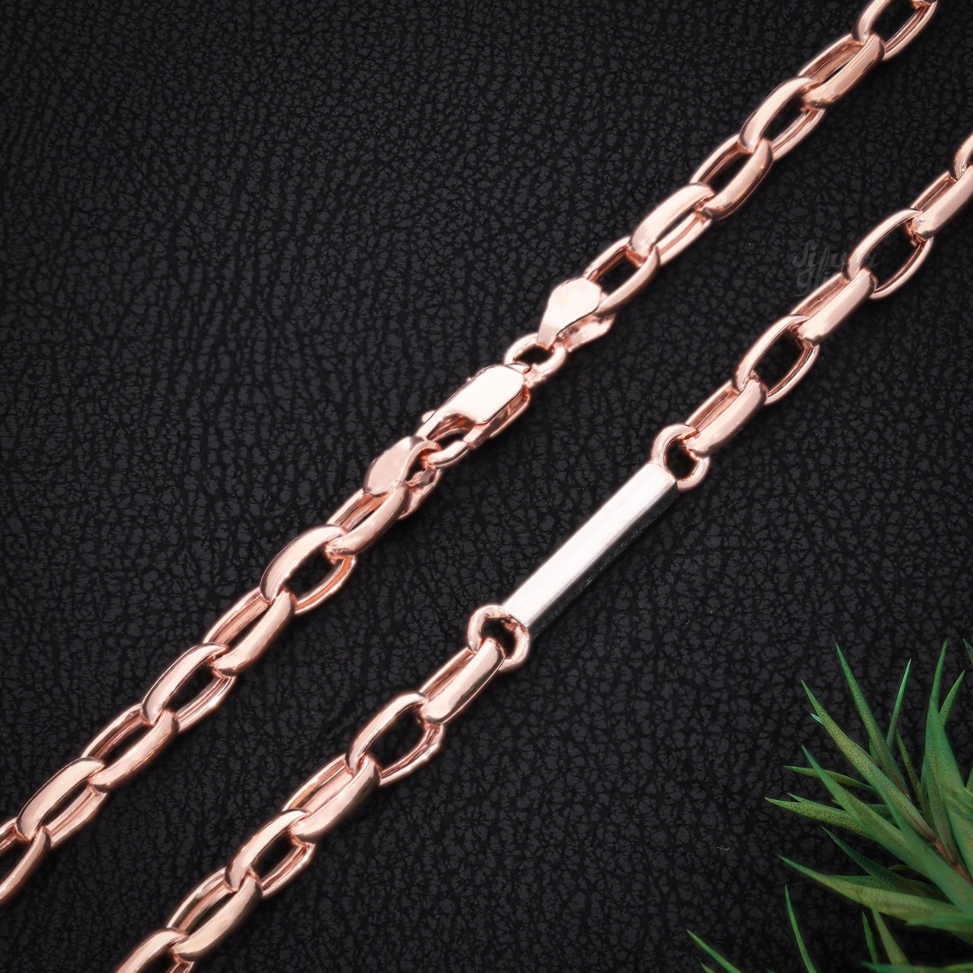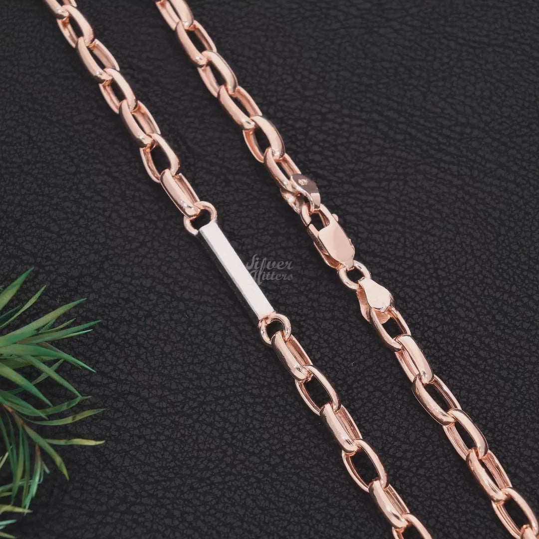 Crafted from high-quality 925 sterling silver, this rose gold paperclip chain is the perfect accessory for any outfit. Its uni-sex design makes it versatile and suitable for anyone, while its beautiful rose gold color adds a touch of elegance. Add this trendy piece to your jewelry collection for a stylish and sophisticated look.